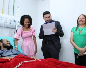 Heliton, que precisou se internar com urgência para a retirada de um dos rins, veria seu sonho de se casar na cerimônia coletiva ser adiado. Diante da situação, a defensora pública Elceni Diogo, em parceria com o Cartório Loureiro, moveu-se com rapidez e sensibilidade para que o matrimônio fosse realizado dentro do próprio hospital.